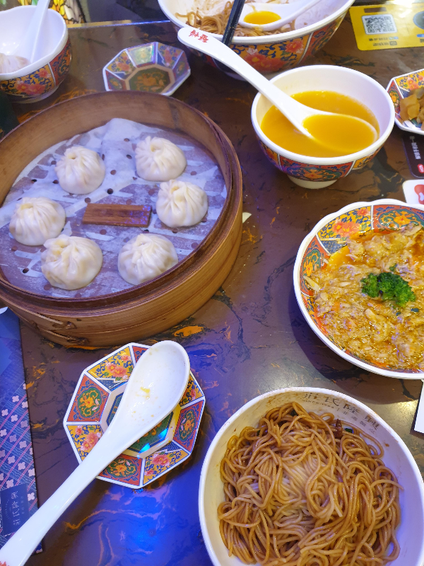 우리가 주문한 메뉴는 ‘게내장 샤오롱바오(蟹粉小笼 6只)’와 ‘게내장 + 새우 샤오롱바오(蟹粉虾仁小笼 6只)’ 그리고 이곳을 오게 만든 ‘게내장(게살) 비빔면(蟹粉黄金拌面)’.